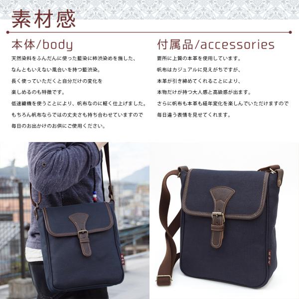 ショルダーバッグ メンズ 斜めがけ 肩掛け 軽量 日本製 倉敷帆布 和装 藍 柿渋染め ミニフラップショルダー お父さん 誕生日 プレゼント [creareきき] IZ-309