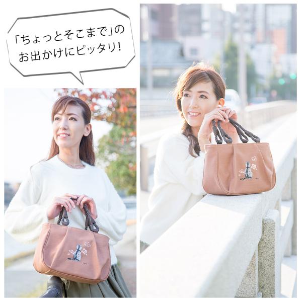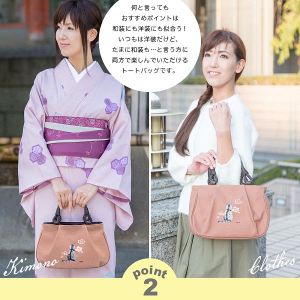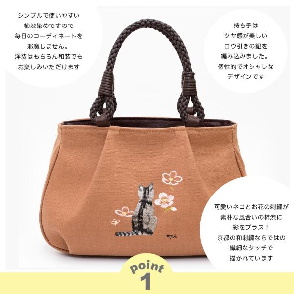 [creareきき] トートバッグ レディース 小さめ 軽量 日本製 猫柄刺繍 柿渋染め 和装 アオリ手提げ マロン お母さん 誕生日 プレゼント KS-182sn