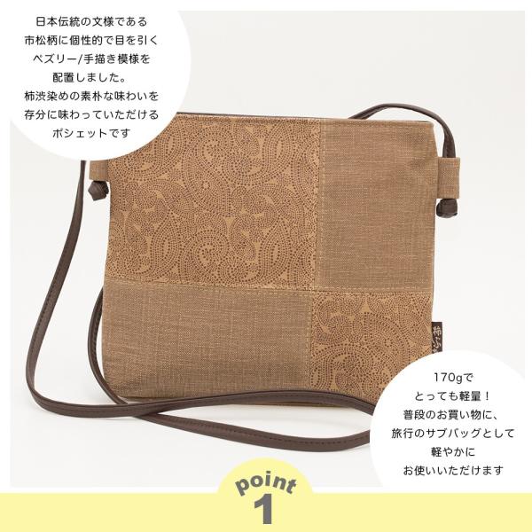 柿渋染めバッグ ポシェット レディース 斜めがけ 軽量 日本製