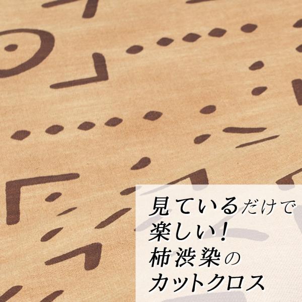 柿渋染め布地 手芸 カットクロス プリント 幾何柄 日本製 京都 綿 日本製 綿スラブ織 キャンバス [50cm×108cm]