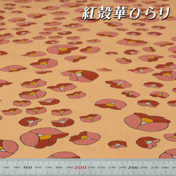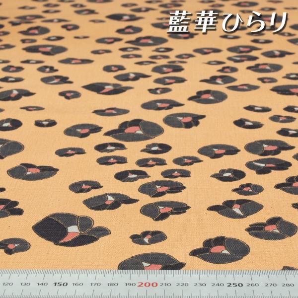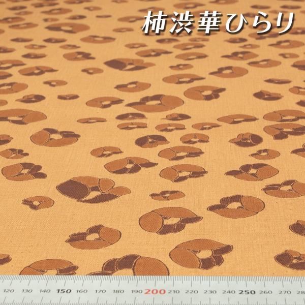 柿渋染め布地 手芸 カットクロス プリント 華ひらり 日本製 京都 綿 スラブ織 キャンバス [100cm×108cm]