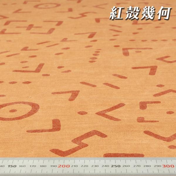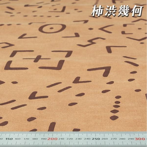 柿渋染め布地 手芸 カットクロス プリント 幾何柄 日本製 京都 綿 スラブ織 キャンバス [100cm×108cm]
