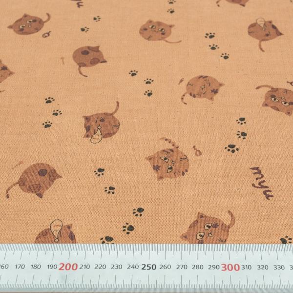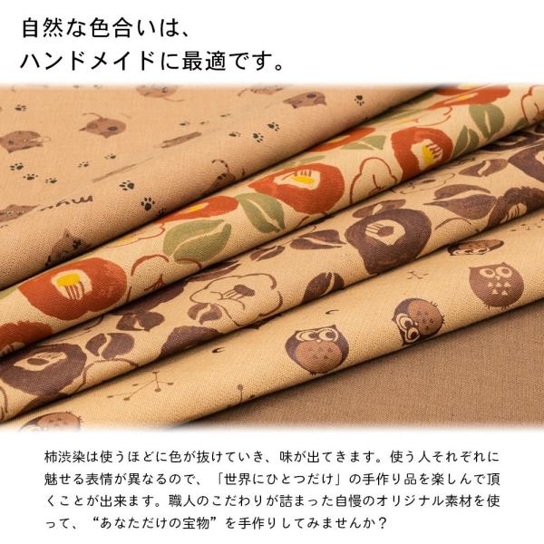 柿渋染め布地 手芸 カットクロス プリント ねこ柄 日本製 京都 綿 スラブ織 キャンバス 100cm