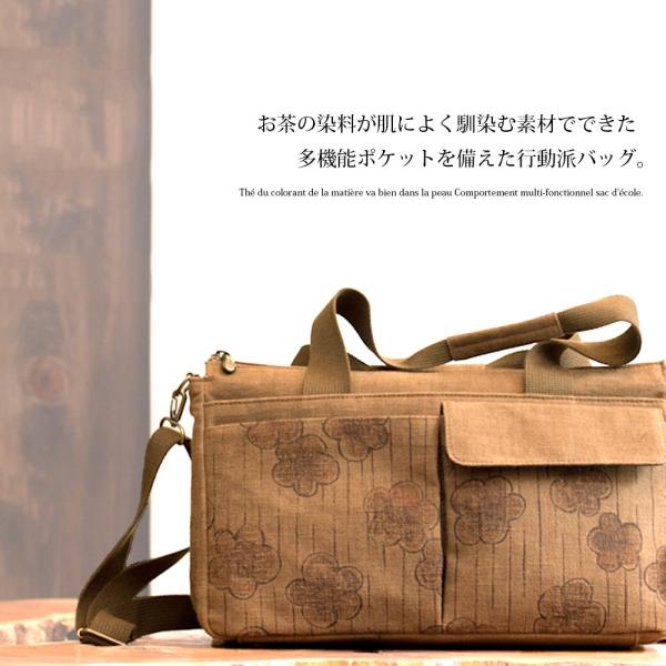 ショルダーバッグ レディース シニア 女性 斜めがけ 軽い 日本製 京都 宇治 お茶染 2way トートバッグ Oneショルダー 帆布 生地 旅行