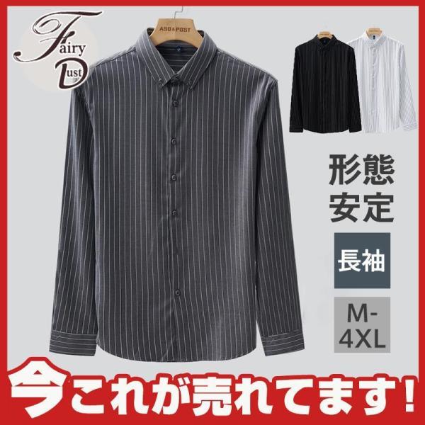 ワイシャツ メンズ 長袖 シャツ ビジネス ス カジュアル 縦縞 ストライプ ス フォーマル 大きいサイズ 通勤 紳士服 形態安定