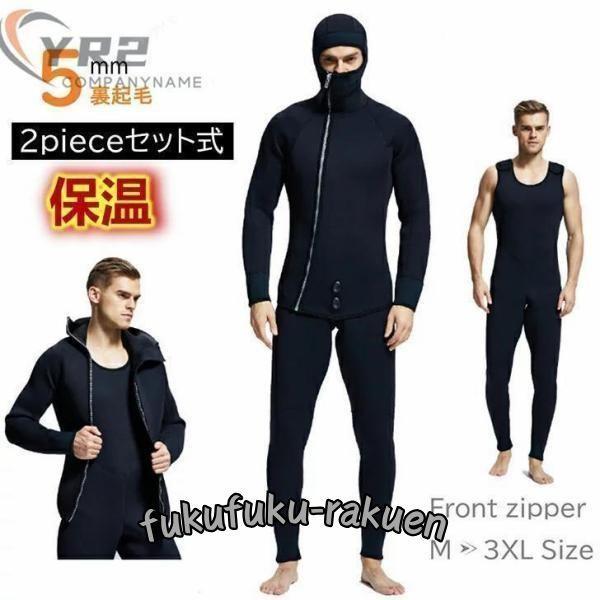 ウェットスーツ メンズ 3mm 5mm 7mm スピアフィッシング フード一体式 2ピース 表ジャージ 裏起毛 ロングジョン フロントジップ