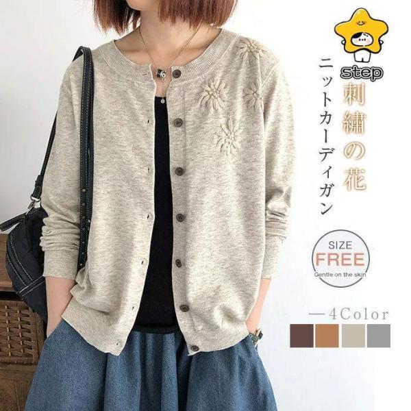 ニットカーディガン 綿 レディース 春 ス 大きいサイズ アウター 羽織 刺?の花 無地 前開き 部屋着 フリーサイズ オーバーサイズ 韓国風