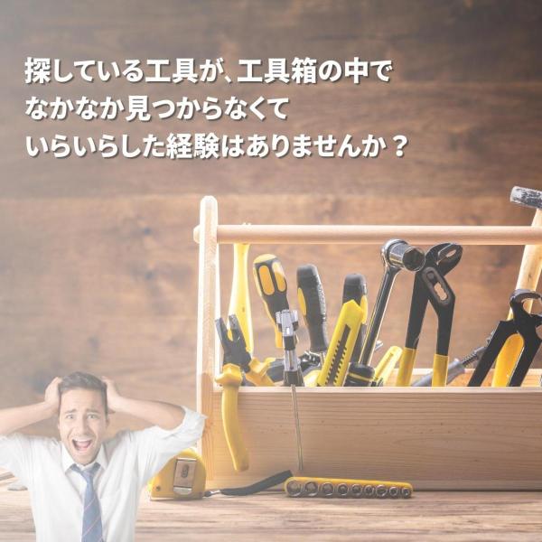 ごちゃごちゃしがちな工具箱。5つポケットがあるのでさまざまな工具を収納可能。