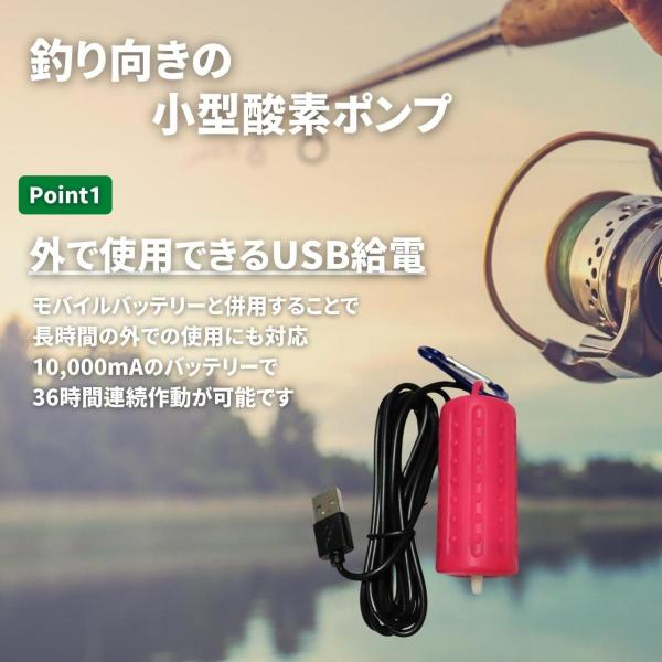 エアーポンプ 釣り 水槽 ぶくぶく USB 酸素ポンプ 小型 携帯 持ち運び 軽量 静音 メダカ 熱帯魚 生き餌 USB給電 モバイルバッテリー