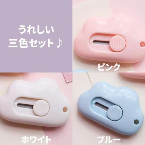 雲形カッター 3個セット 雲カッター 雲型 ミニサイズ 文房具 韓国 ピンク ホワイト ブルー 雲 カッターナイフ 手帳 文具 クラウドカッター