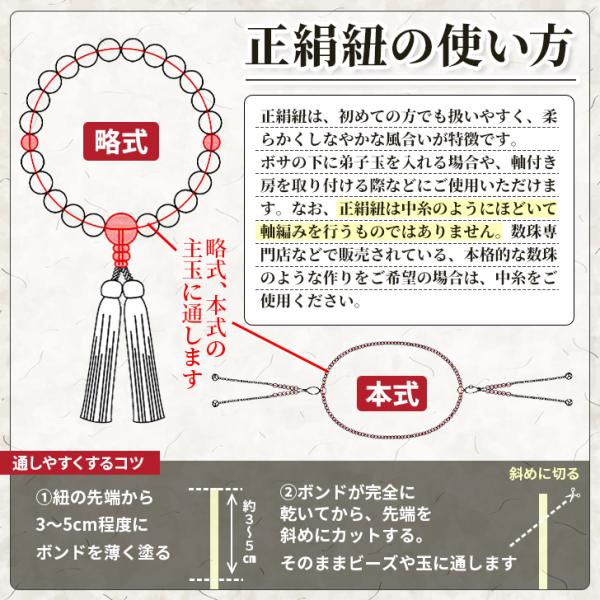数珠 紐 正絹紐 1.0mm 1m 念珠 正絹 ひも ヒモ 絹100% 制作 修理 交換 リメイク 手芸材料 メール便発送