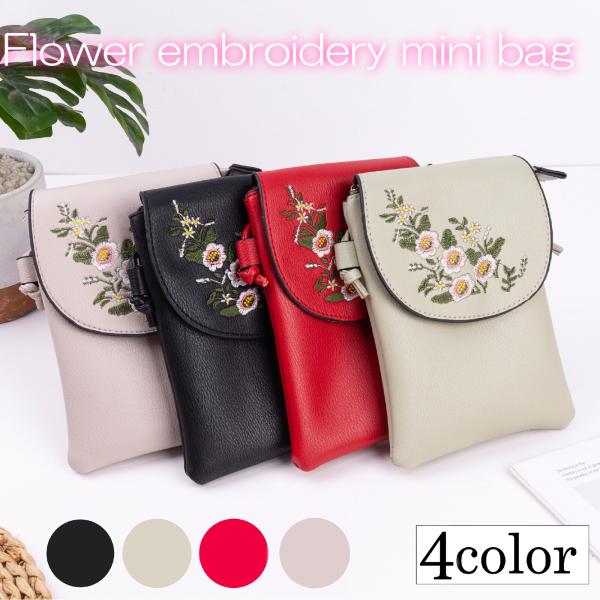 【送料無料】ミニ ショルダーバッグ レザー レディース スマホショルダー 花柄 刺繍 スマホポーチ ポシェット BBZ-0904 (管理コード12mayoC)