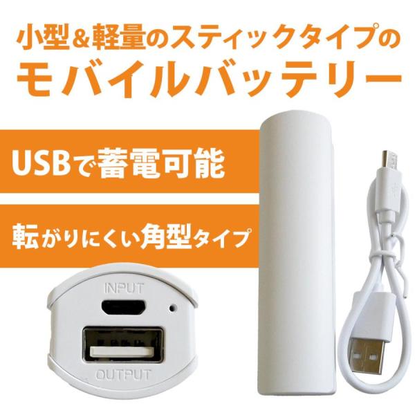 【送料無料】モバイルバッテリー 2500mAh PSE基準適合 コンパクト 軽量 スティックタイプ microUSBケーブル付き (管理コード825mayoC)