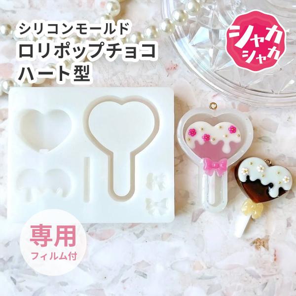 シリコンモールド ハート型 ロリポップチョコ シャカシャカ 専用フィルム付 シェイカー キーホルダー レジン シリコン型 カプセル クラフト用型枠 手芸 スイーツ