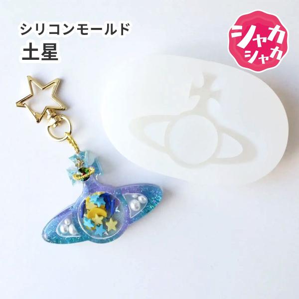 シリコンモールド 土星 惑星 シャカシャカ レジン 型 星 月 天体 ネックレス ペンダント 大きめ キーホルダー パーツ カプセル シェイカー 3D クラフト