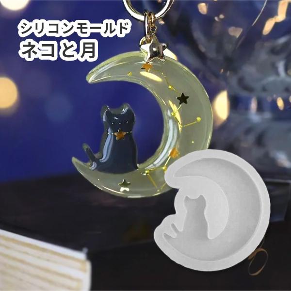 シリコンモールド ねこ 三日月 レジン 月 ネコ 夜 制作 動物 クラフト ハンドメイド 動物 夜空 キラキラ 手作り 星 ハロウィン 黒猫 モチーフ