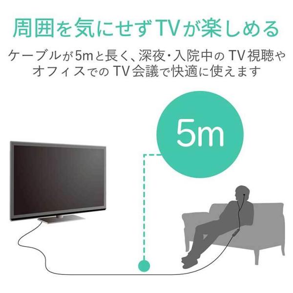 エレコム イヤホン テレビ用 φ3.5mm 3極ミニプラグ ステレオ 高音質 カナル型 5m Y型 結束バンド φ10mm ドライバー イヤーピース フィット ブラック