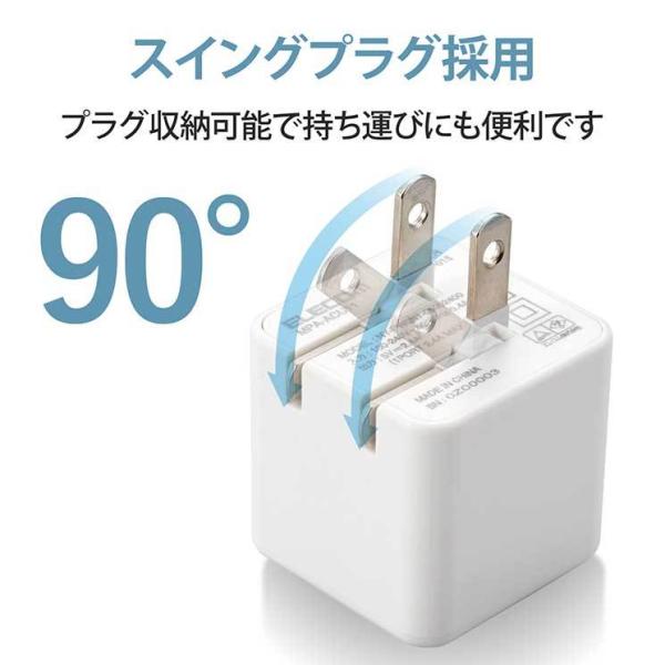 エレコム スマホ充電器 AC充電器 USBポート×2 2.4A出力 コンパクト キューブ型 ホワイトフェイス ケーブルクリップ スマホ タブレット MPA-ACU11WF