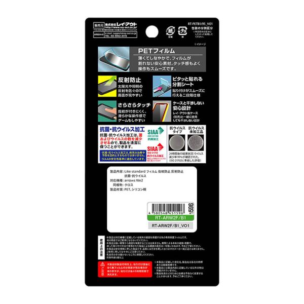 説明:貼り付けがスムーズに行える二段階仕様。太陽光や照明の反射を防ぐので画面が見やすい。ウイルスの数を減少させ、製品を清潔に保つことができます。SIAAの安全性基準に適合。指紋が付きにくく、滑らかな操作感でゲームをする方にもおすすめ。レイ・アウト製ケース(別売)と一緒に使用しても干渉しない設計。arrowsWe2 arrows We2 F-52E F52E アローズ フィルム シート 流行 人気 定番 トレンド フィルム シート シール 保護 画面 液晶 清潔 綺麗 きれい 指紋防止 アンチグレア 反射防止 マット 抗菌 抗ウィルス