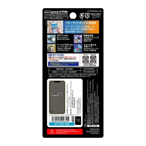 PETフィルム ブルーライトカット 光沢 衝撃吸収 抗菌・抗ウイルス 平面保護 指紋防止