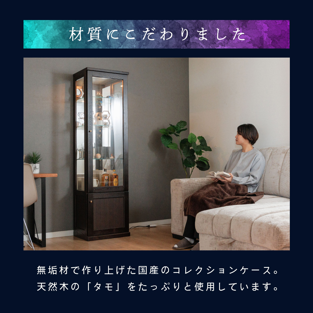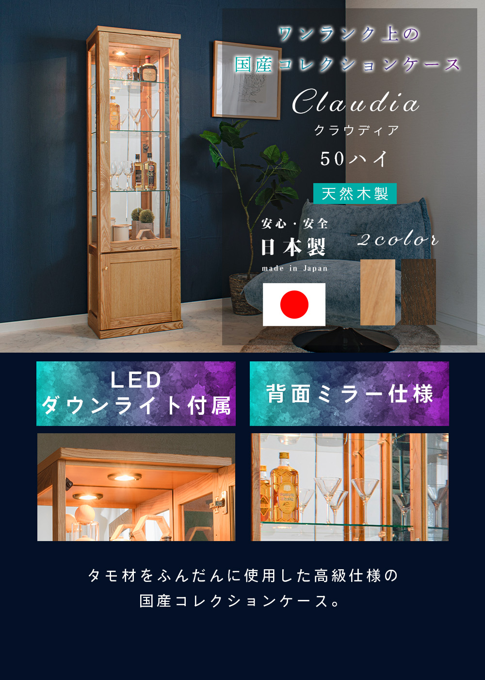 アウトレット コレクションケース ハイタイプ LED ライト付 国産 天然木 幅50cm 壁面収納 コレクションボード ガラスケース 完成品 クラウディア 爆買