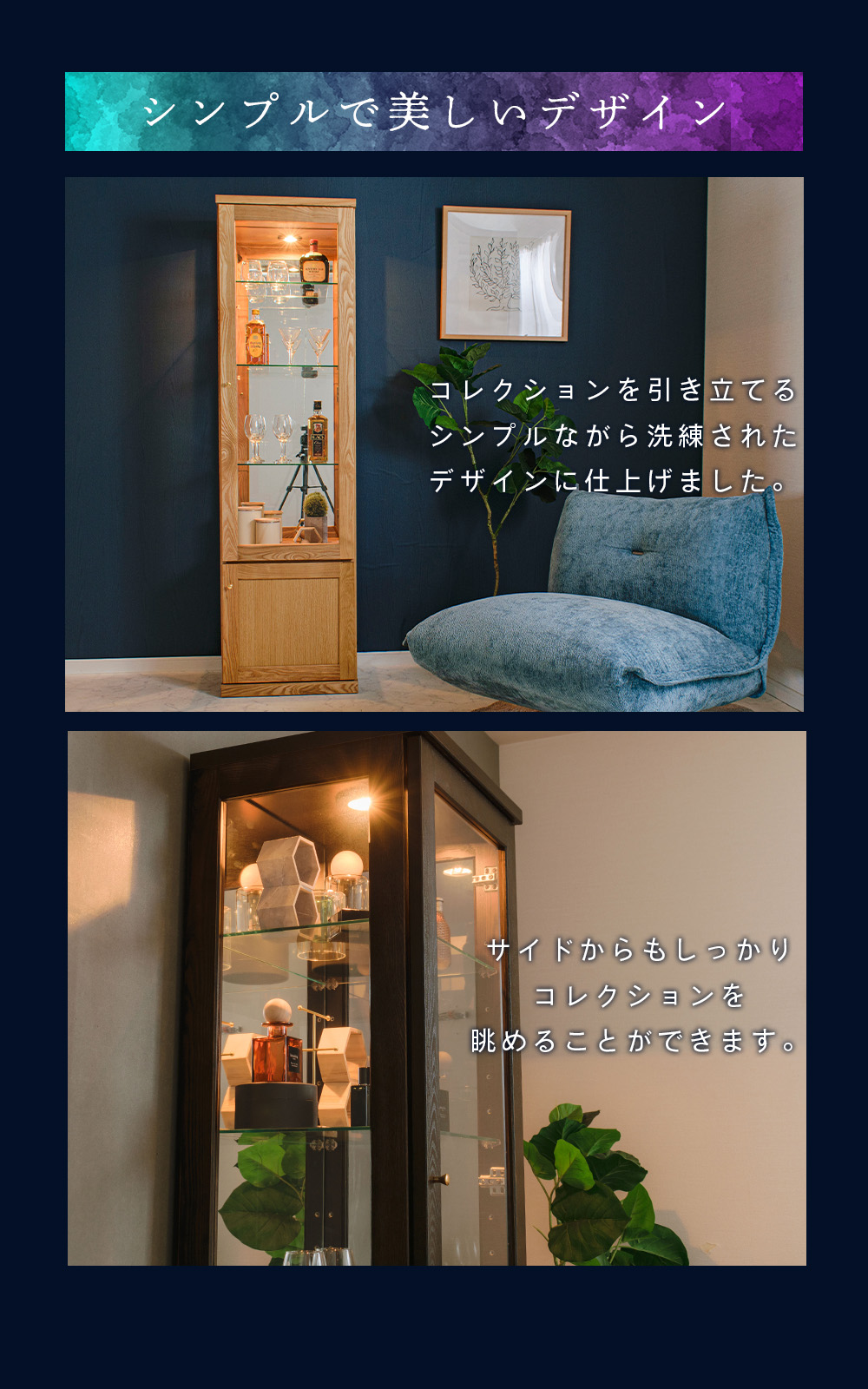 コレクションケース 天然木 LED ライト付 国産 幅60cm 壁面収納 コレクションボード ガラスケース 完成品 高級 キュリオケース ウィンストン 爆買