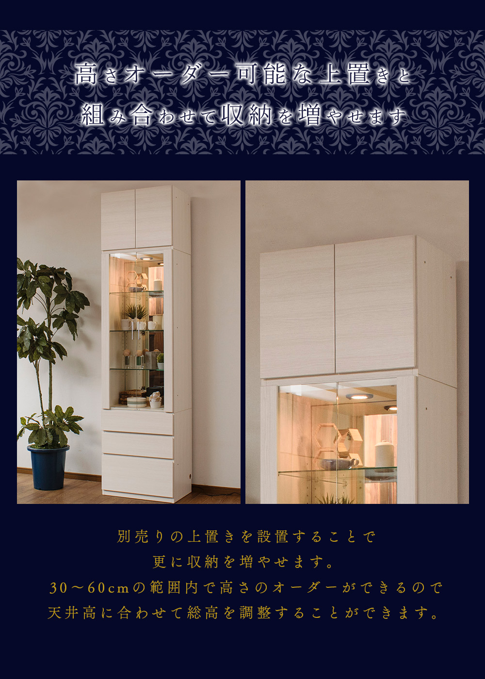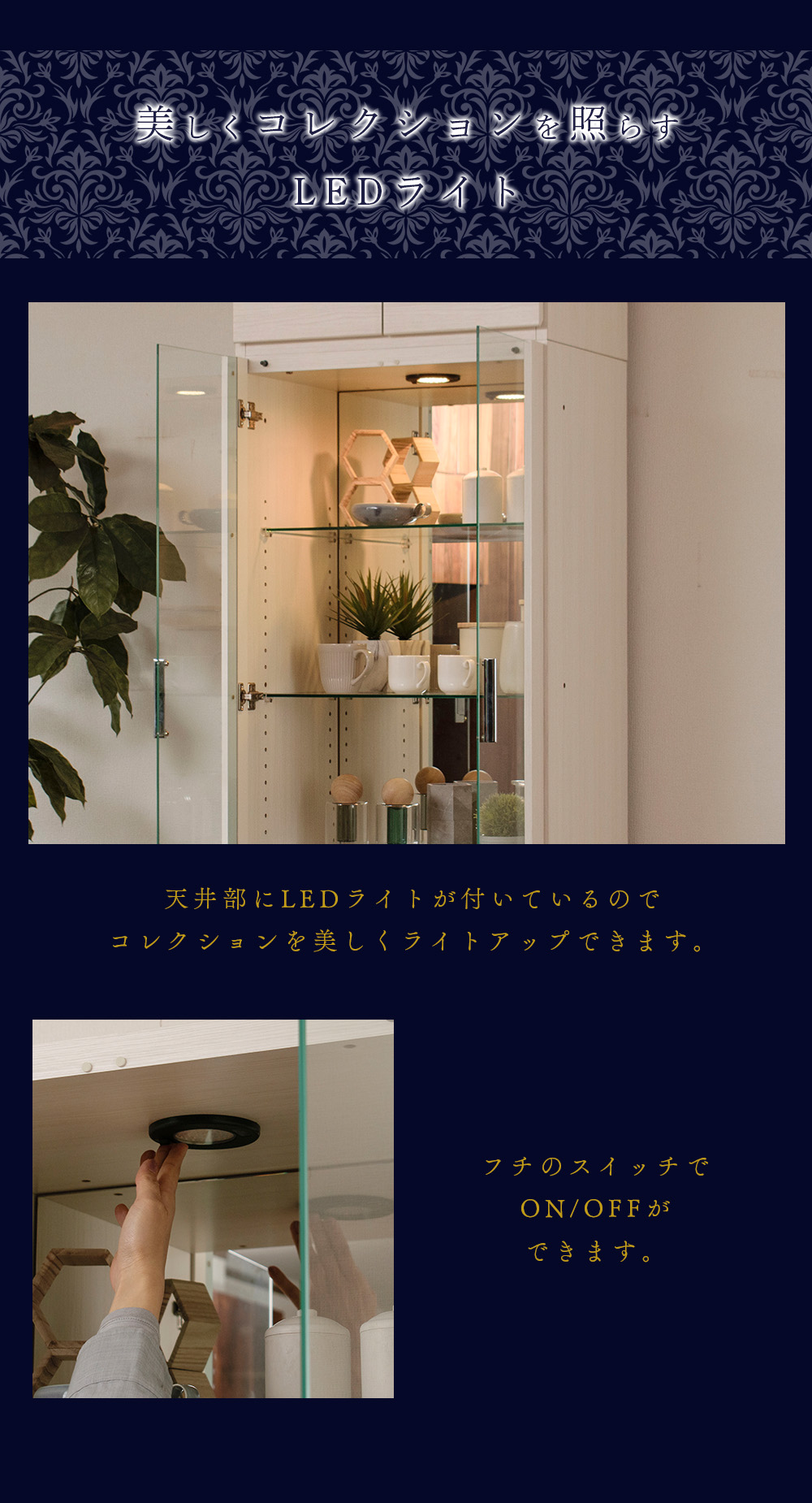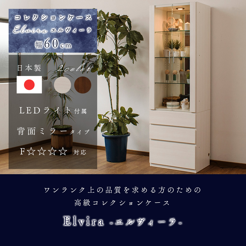 コレクションケース LED ライト付 国産 幅60cm 壁面収納 コレクションボード ガラスケース 完成品 高級 キュリオケース エルヴィーラ 爆買