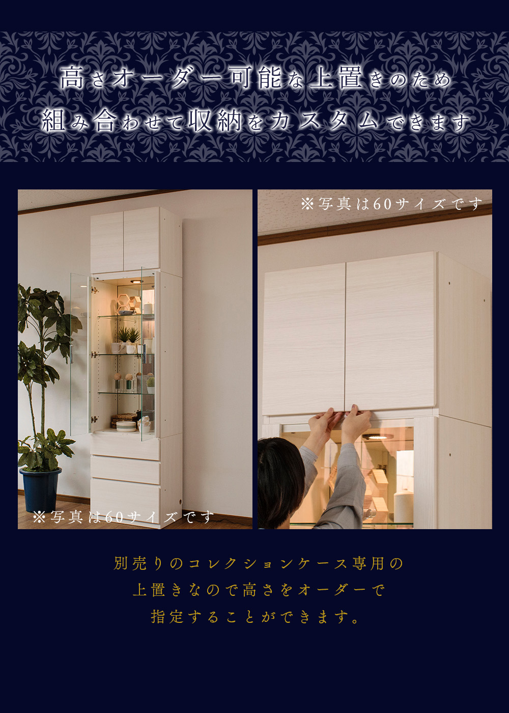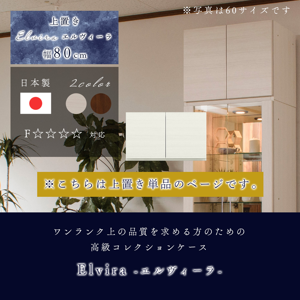 国産 大型 幅80cm キャビネット コレクションケース キュリオケース 高級 壁面収納 ショーケース ハイタイプ 戸棚 エルヴィーラ 80 専用上置き 爆買