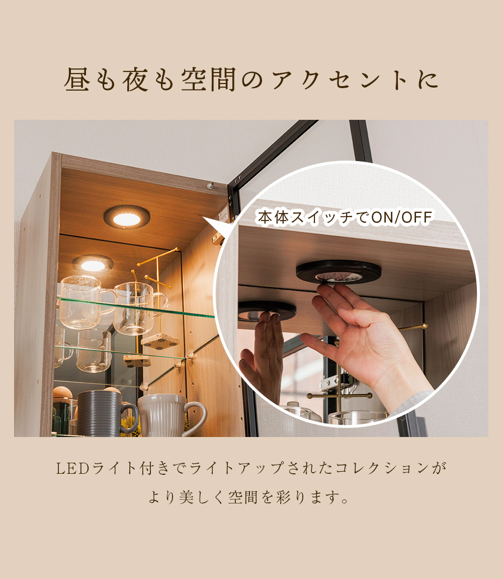 コレクションケース 天然木 LED ライト付 国産 幅60cm 壁面収納 コレクションボード ガラスケース 完成品 高級 キュリオケース ウィンストン 爆買