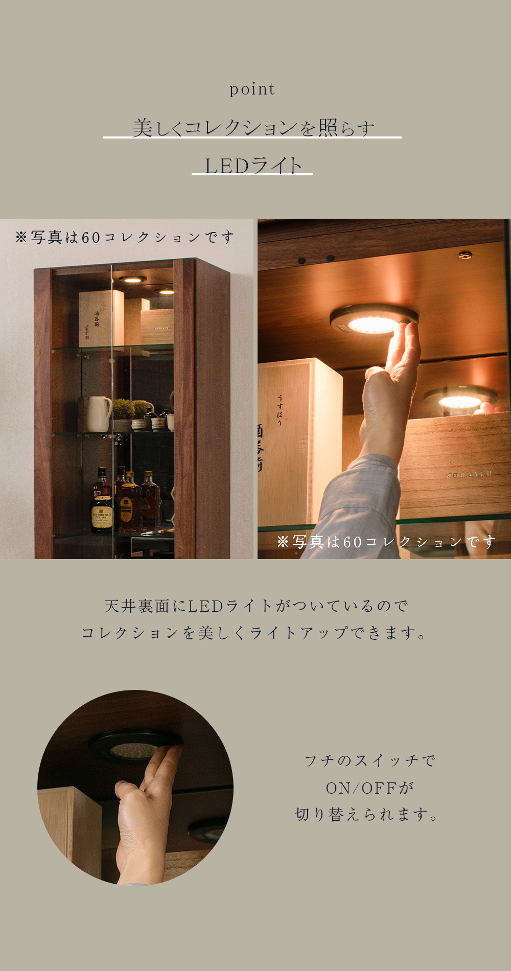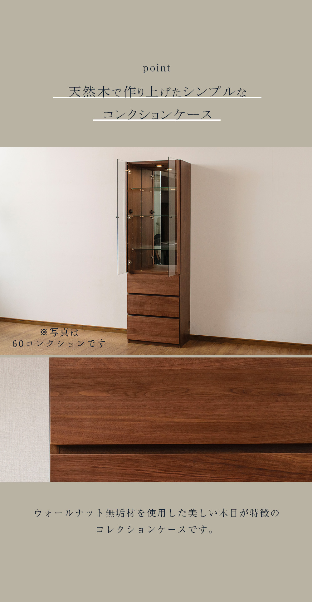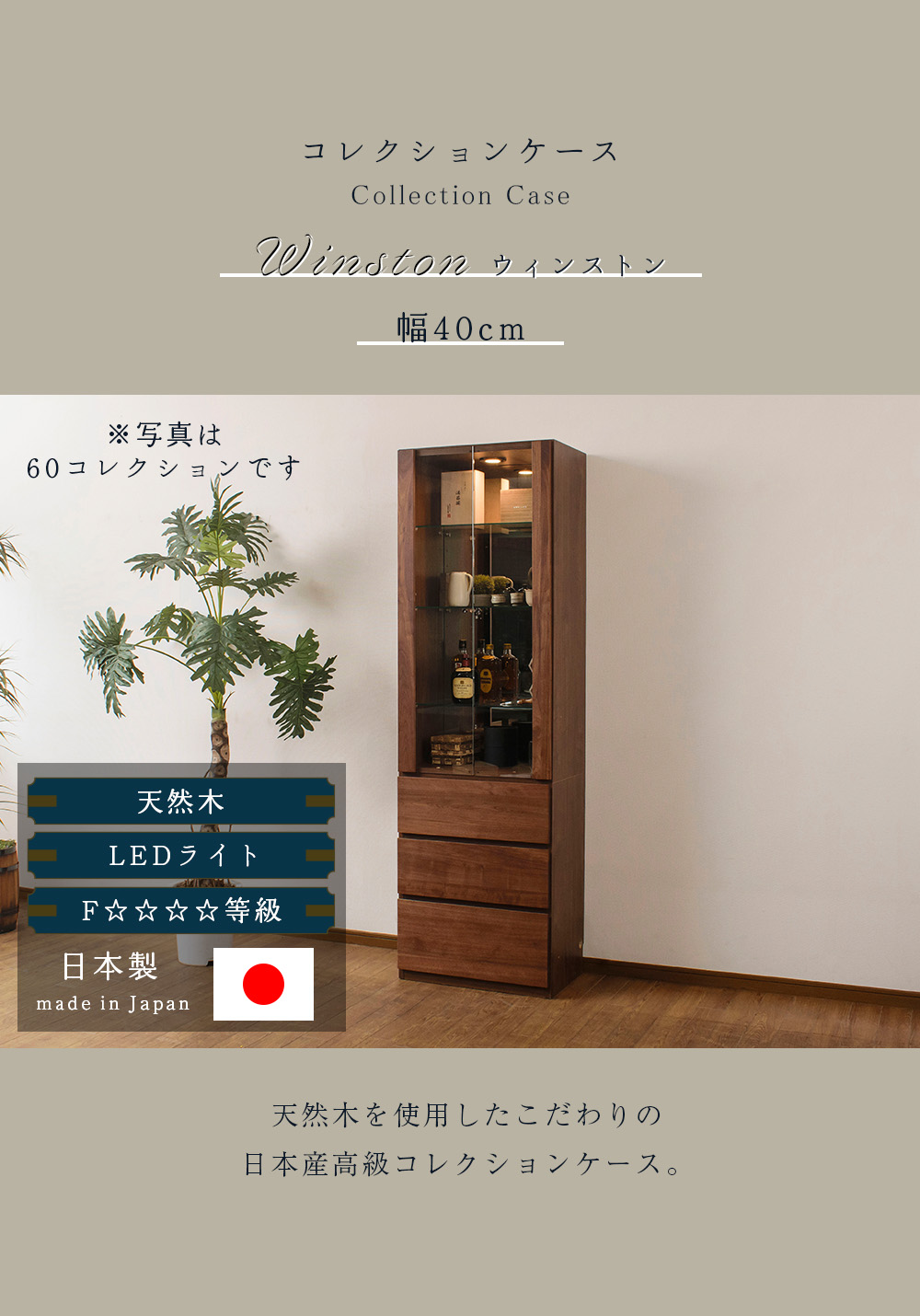 コレクションケース 天然木 LED ライト付 国産 幅60cm 壁面収納 コレクションボード ガラスケース 完成品 高級 キュリオケース ウィンストン 爆買