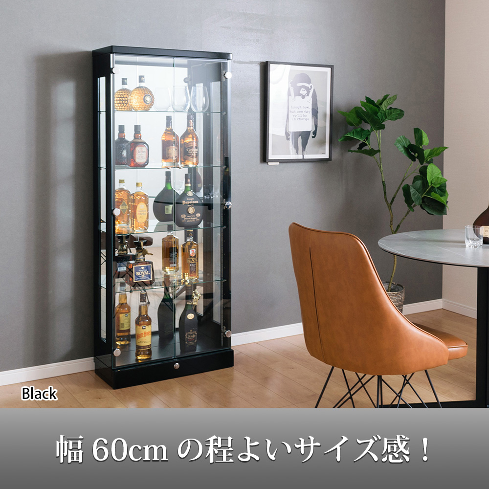 コレクションケース 天然木 LED ライト付 国産 幅60cm 壁面収納 コレクションボード ガラスケース 完成品 高級 キュリオケース ウィンストン 爆買