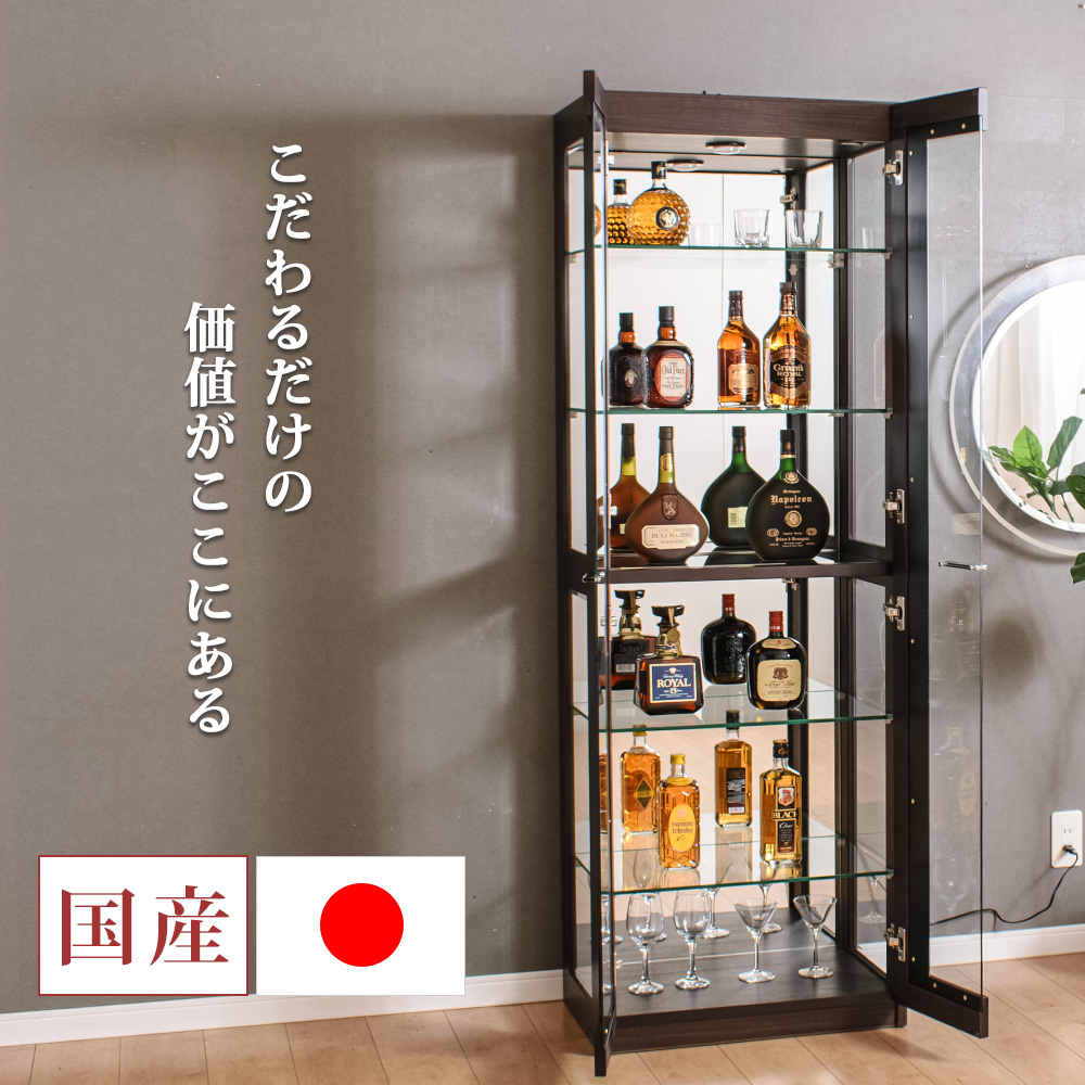 コレクションケース LED ライト付 国産 幅60cm 天然木 ハイタイプ コレクションボード ガラスケース 完成品 高級 キュリオケース バベル 爆買