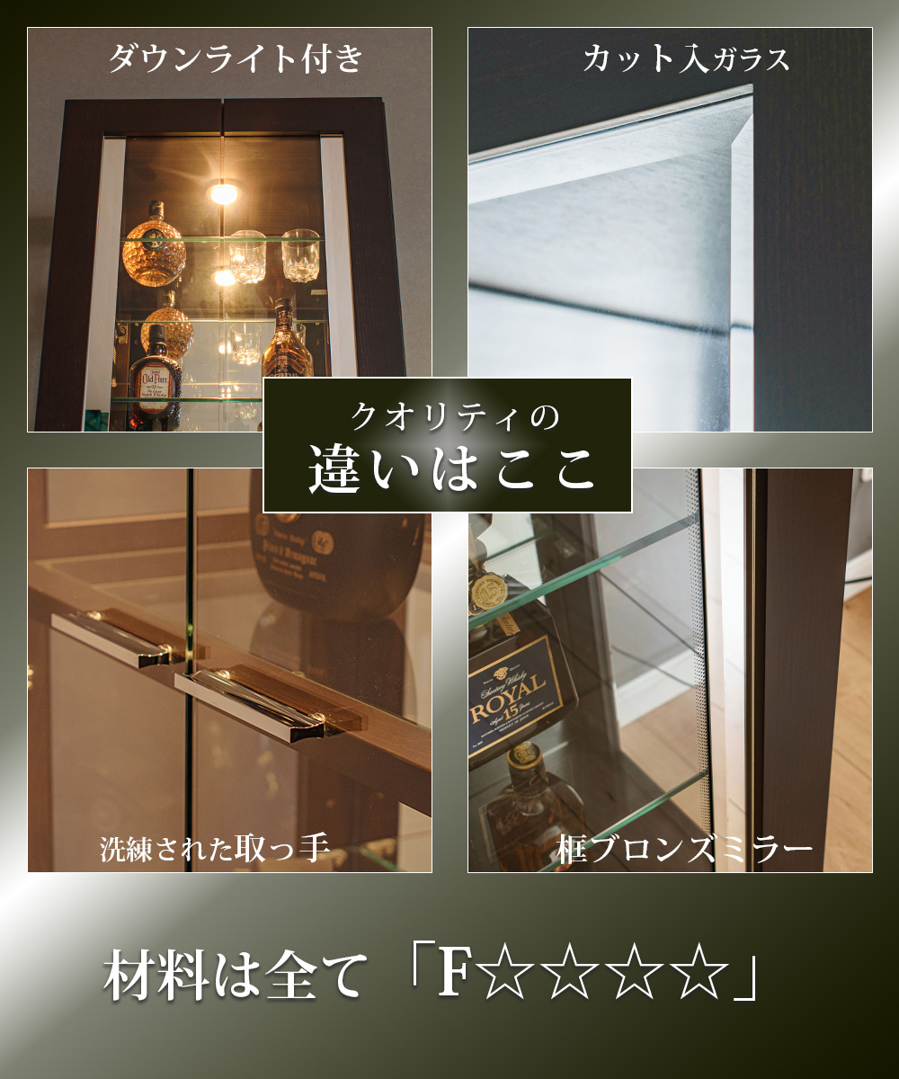 ・棚ガラス:8mm厚ガラス(可動式) / 4枚+中段1枚 標準装備