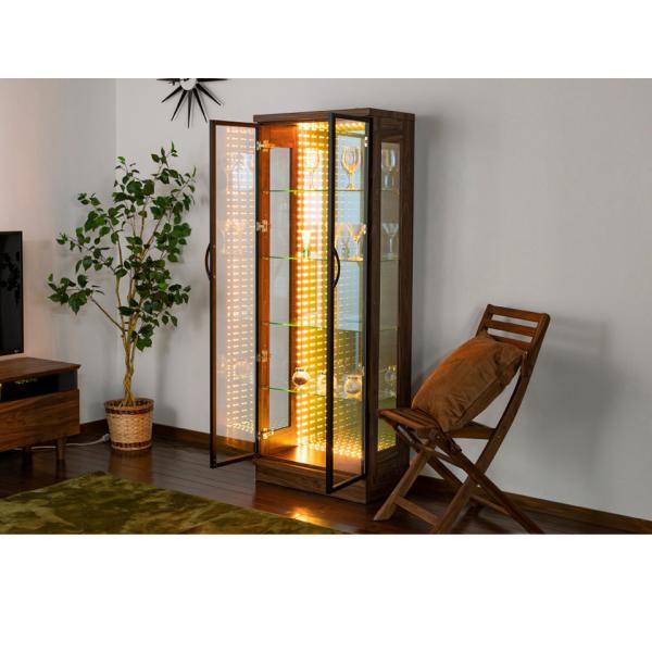 コレクションケース 天然木 LED ライト付 国産 幅60cm 壁面収納 コレクションボード ガラスケース 完成品 高級 キュリオケース ウィンストン 爆買