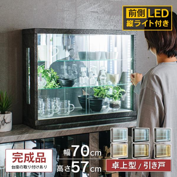 ミニカー収納 コレクションケース 卓上 LED 70 引き戸 石目調 トミカケース ガンプラ フィギュア コレクションボード カフェ 爆買