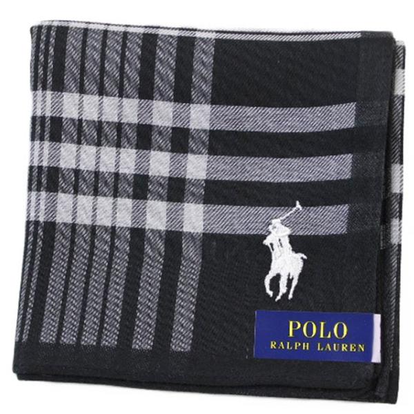 ハンカチ 1枚 ポロ ラルフローレン メンズ 綿 ブランド ハイブランド 黒 ブラック グレー チェック 白 ロゴ 刺繍 男性