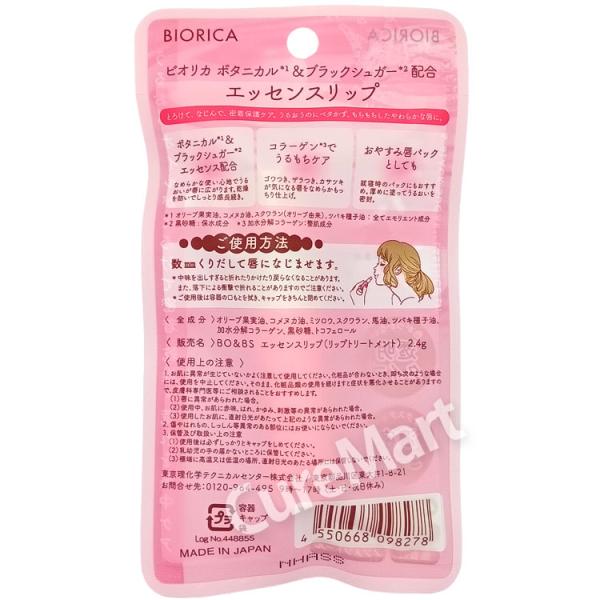 ビオリカ ボタニカル&シュガー エッセンスリップ 2.4g 透明タイプ 赤 日本製 BIORICA LDK A+ メール便送料無料 もっちり唇 リップクリーム 無香料 ドウシシャ