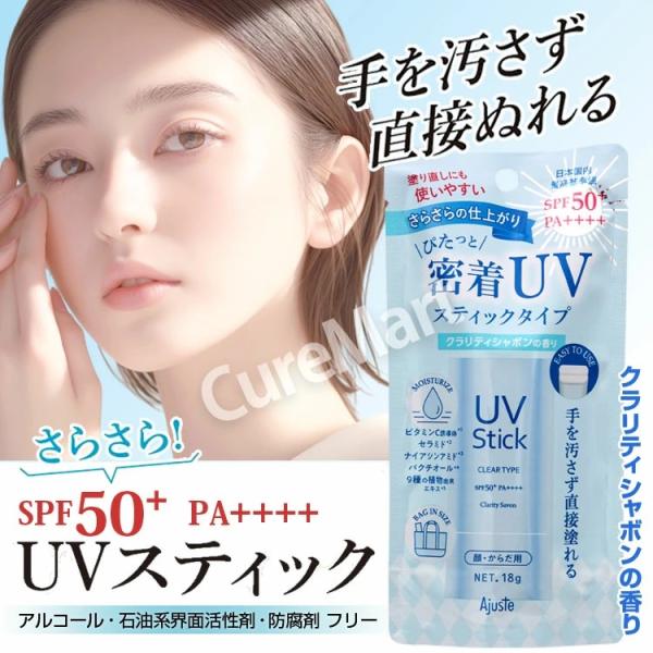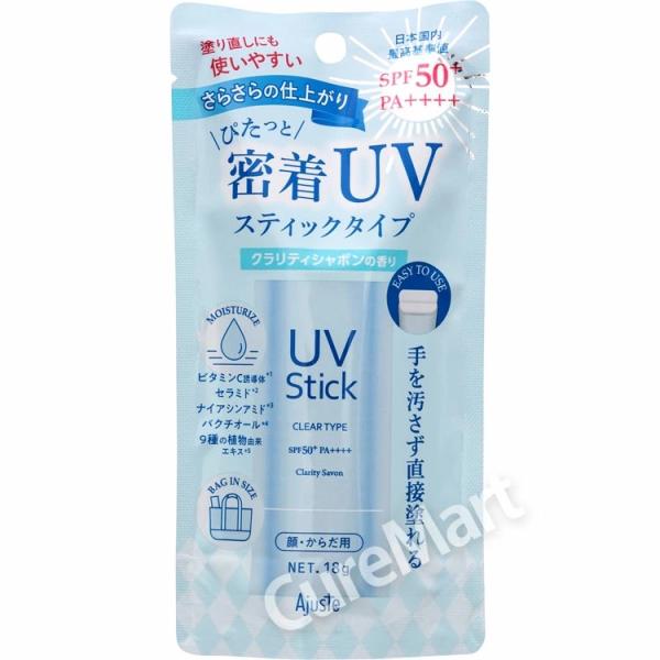 アジャステ UVスティック 18g SPF50+ PA++++ クラリティシャボンの香り 日本製 メール便送料無料 日焼け止め 密着UV 紫外線対策 顔 UV カット Ajuste ドウシシャ