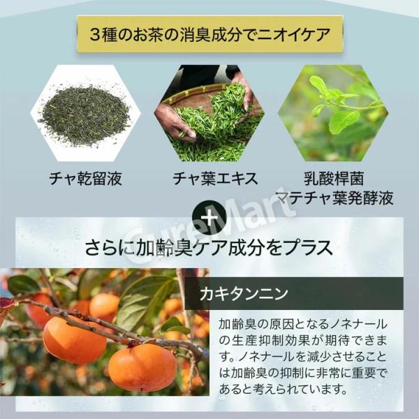 3つのお茶の消臭成分と加齢臭を抑える成分を配合し、男性特有のニオイの原因を洗い流します。