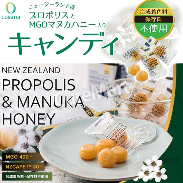 コサナ プロポリス &マヌカハニーMGO400+ キャンディ は、ニュージーランド産プロポリスとMGO400+のマヌカハニーを配合したキャンディです。