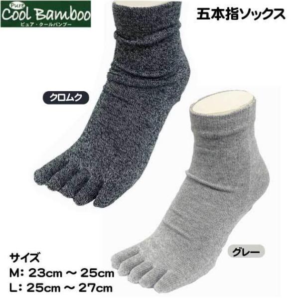 在庫限りで終了!五本指ソックス ピュア・クールバンブー 竹繊維の靴下 五本指健康ソックス カラー・2色・L(25cm〜27cm)