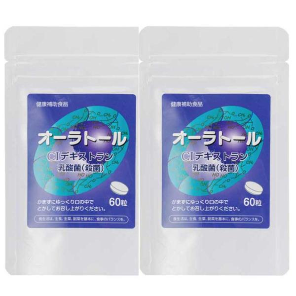 健康補助食品 オーラトール 60粒入りX2袋 環状イソマルトオリゴ糖含有加工食品 虫歯・歯周病・口臭ケアサプリ ヨーグルト味