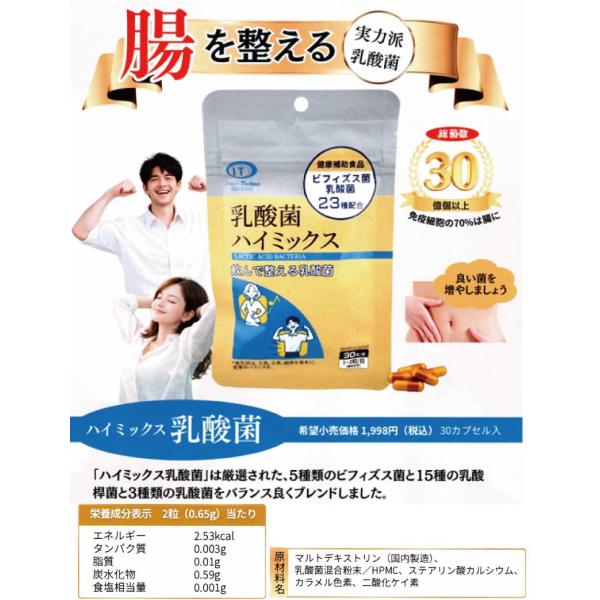 乳酸菌含有食品 ハイミックス乳酸菌 30カプセル 健康補助食品 ビフィズス菌、乳酸菌23種配合