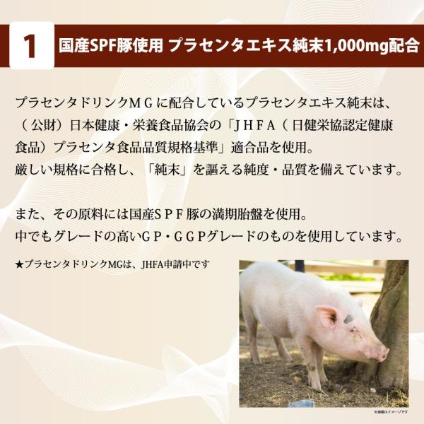 ( 公財)日本健康・栄養食品協会の「J H F A(日健栄協認定健康食品)プラセンタ食品品質規格基準」適合の水溶性プラセンタエキス純末を使用。
