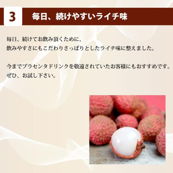 純度と品質の高さは折り紙つきです!しかも、話題のPQQやアスタキサンチンなどプラセンタをサポートする成分も豊富に配合。飲みやすいライチ味。