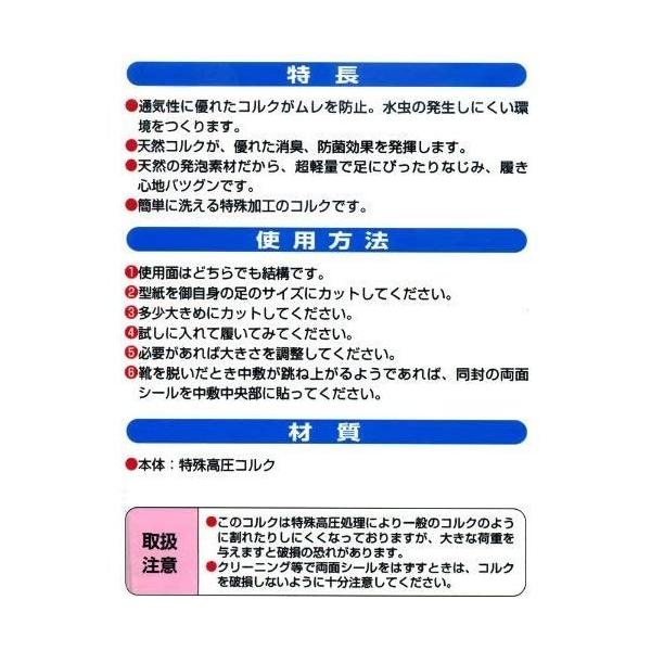 男女兼用 【100%コルク】 “健康中敷 The コルク フリーサイズ(20cm〜27cm)” 臭わない!ムレなし! 足になじむ超軽量! 日本製