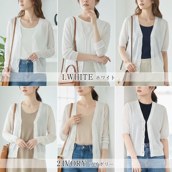カーディガン レディース 春 薄手 uv 夏 透かし きれいめ カーディガン トップス 長袖 七分袖 半袖 黒