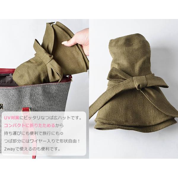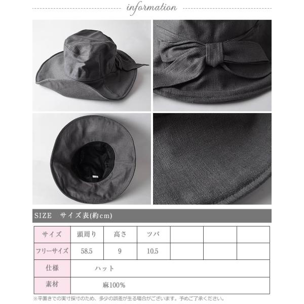 つば広のUVケアハットはサラリとした清涼感ある麻素材です。