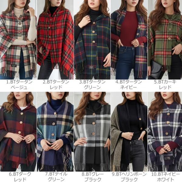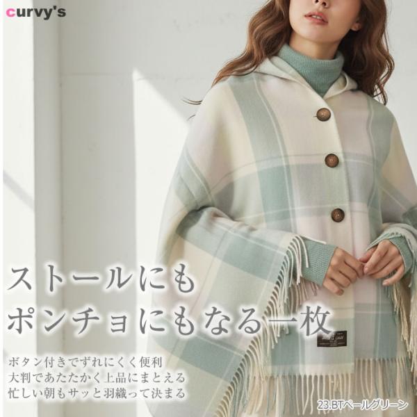 ■商品名:ストール 大判 レディース チェック 厚手 秋冬 ポンチョ ボタン 授乳ケープ 出産祝 マタニティ プレゼント