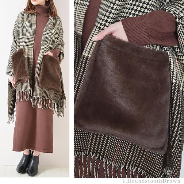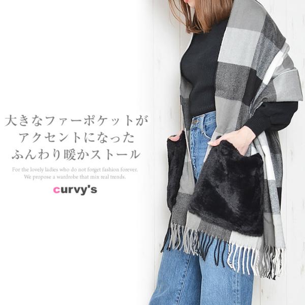 なめらかな手触りのエコファーポケット付きの大判ストールです。